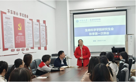 2025年11月6日,中南大学生命科学学院研究生会骨干培训会在生科大楼420会议室举行。本次培训以“明确职责、凝聚共识、赋能成长”为主题,旨在加强组织建设,提升骨干履职能力。学院党委副书记李善妮,学工办主任、辅导员李跃辉老师及全体研会成员参会,培训会由刘泱泱主持。