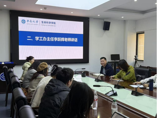 为全面总结本学期工作成效,精准擘画新学期学生工作发展蓝图,2026年1月14日,生命科学学院研究生会在生科大楼D626顺利召开2025-2026学年第一学期研究生会工作述职总结大会。生命科学学院学工办主任、辅导员李跃辉老师及全体研究生会成员参会,培训会由研究生会执行主席刘泱泱主持。