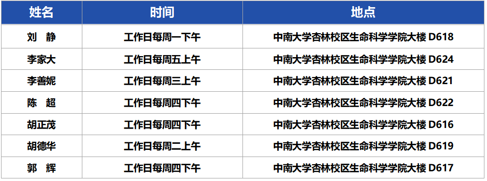 生命科学学院领导干部接待日安排表
