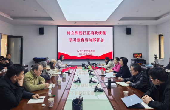 2026年3月5日,生命科学学院召开树立和践行正确政绩观学习教育工作部署会。院党委书记刘静主持会议并讲话,学院领导班子、党支部书记、系主任参加会议。