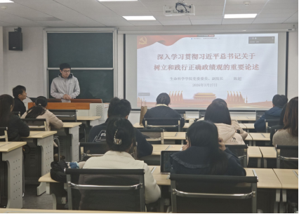为深入学习贯彻习近平总书记关于树立和践行正确政绩观的重要论述,2026年3月27日,中南大学生命科学学院第十党支部在生命科学大楼D205会议室召开专题党课,学院党委委员、副院长陈超同志担任主讲人,支部全体党员参会学习。