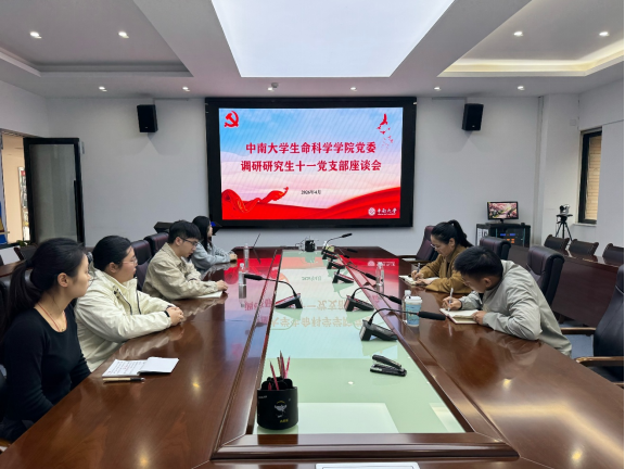 4月15日,生命科学学院党委副书记李善妮,学院党委委员、副院长郭辉深入研究生十一党支部开展基层党建工作专题调研,广泛听取支委、党员意见建议,实地督导推进树立和践行正确政绩观学习教育,并就进一步提升支部建设质量、解决研究生急难愁盼问题给予精准指导。